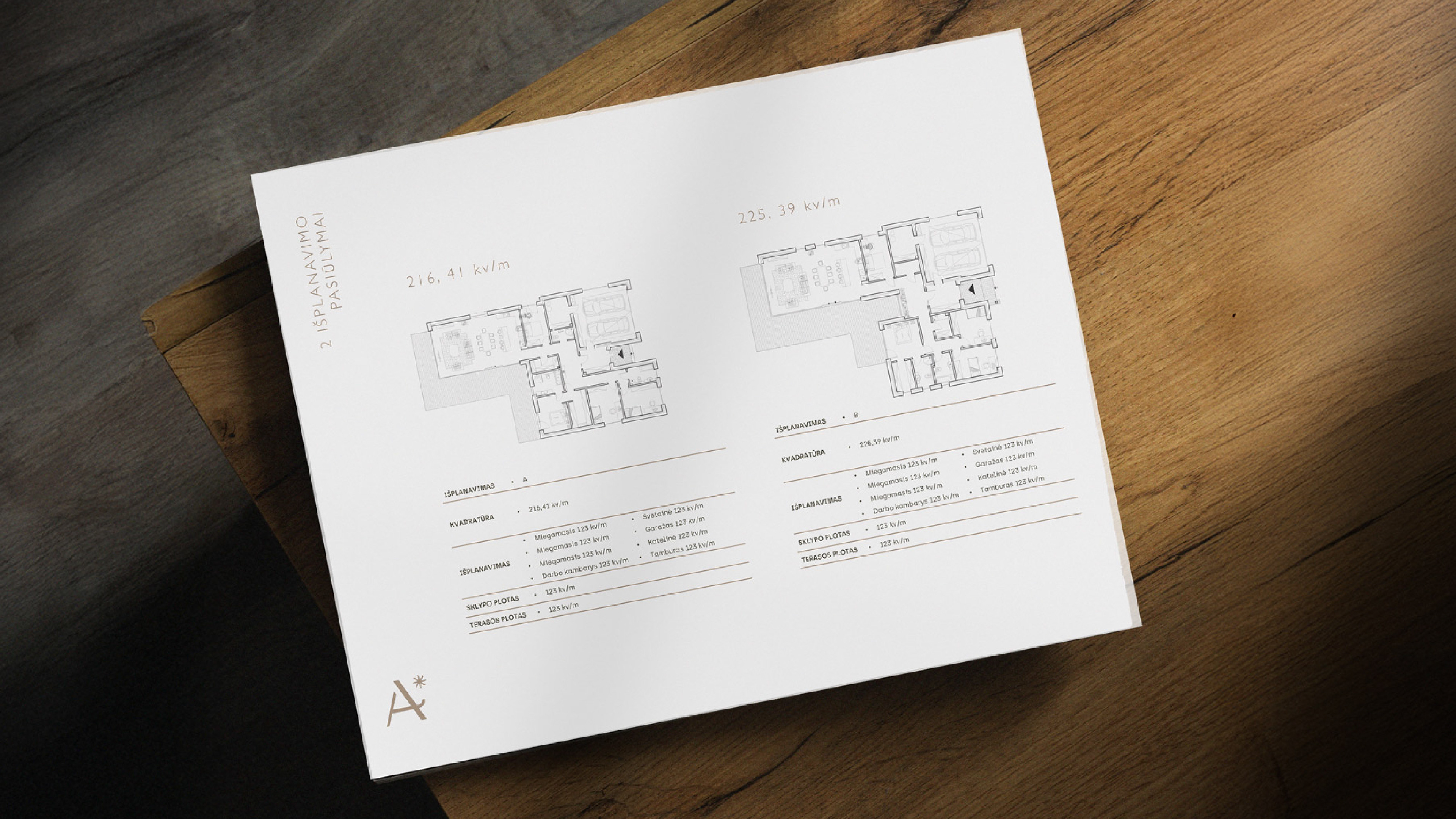 The logo is based on architectural balance and spatial structure. Stylized “A” forms are connected by a horizontal line expressing order, cohesion, and precision. From this axis emerges a subtle star element referencing both the aster flower and the project’s commitment to detail, quality, and craftsmanship.