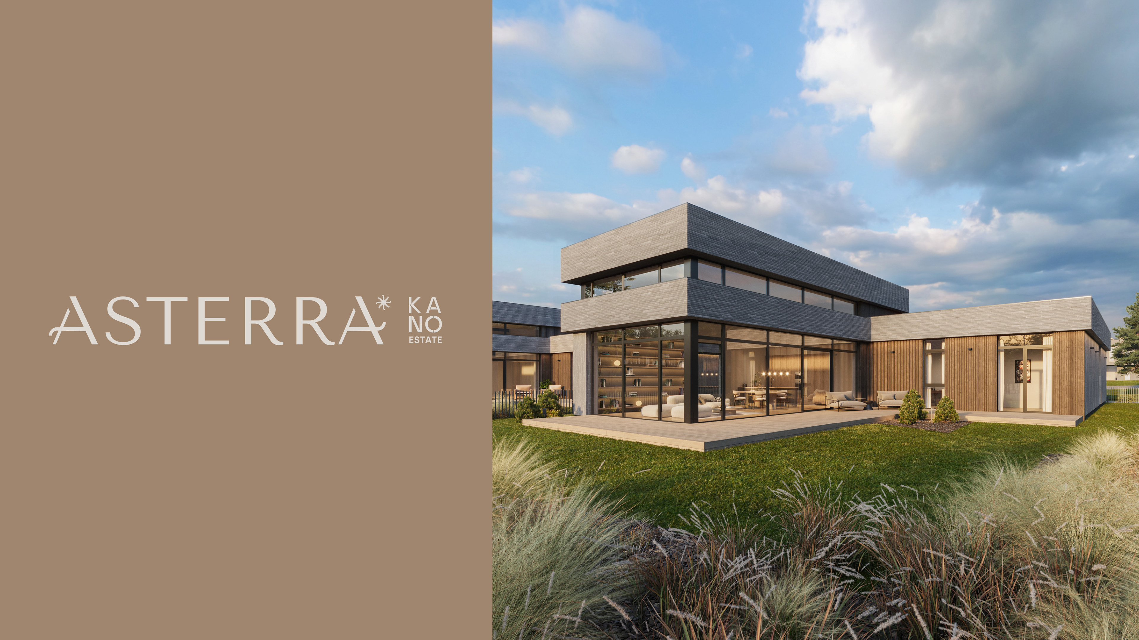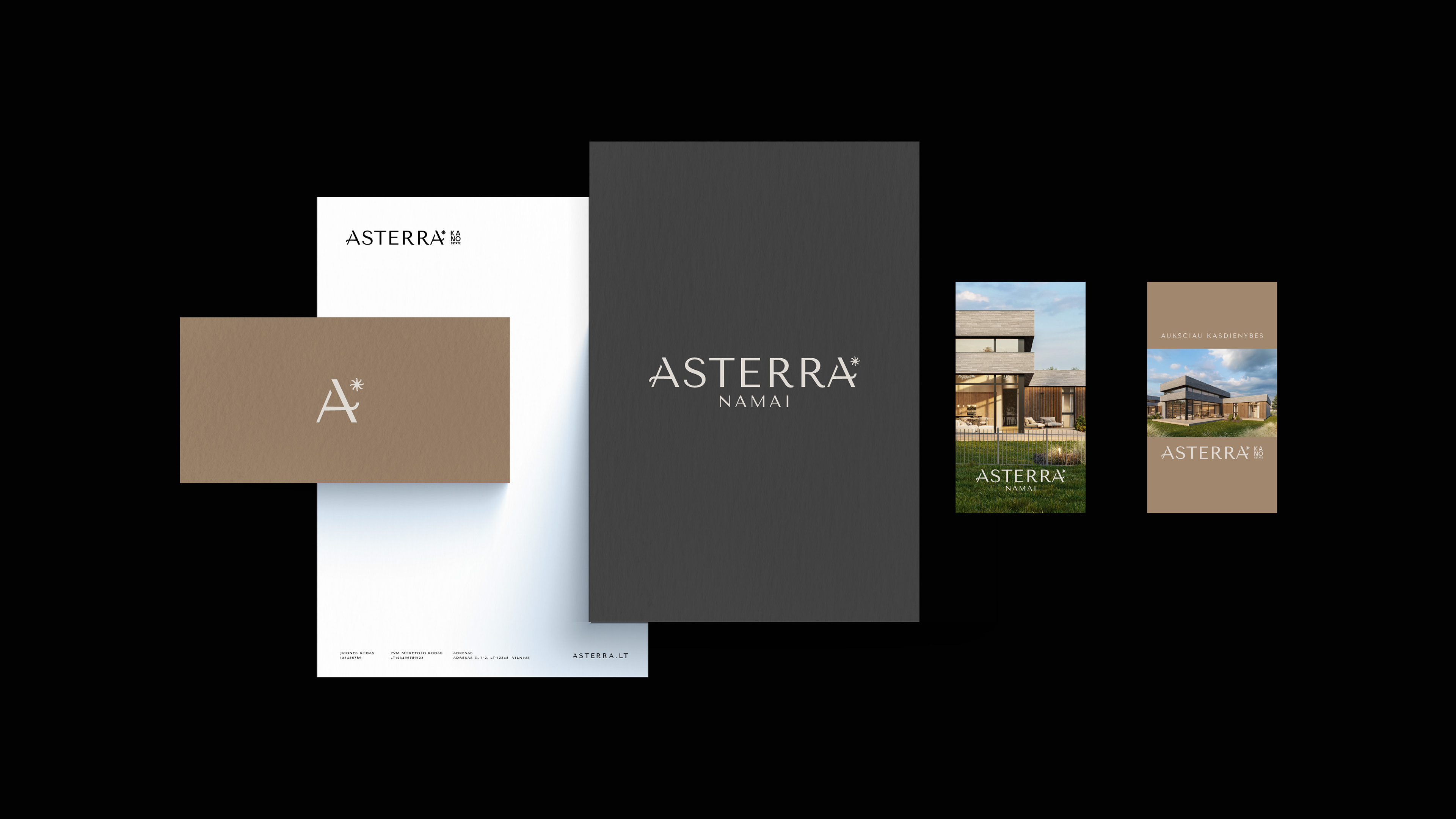 The brand identity reflects architectural clarity and the emotional value of place, positioning Asterra as a timeless yet modern residential environment.