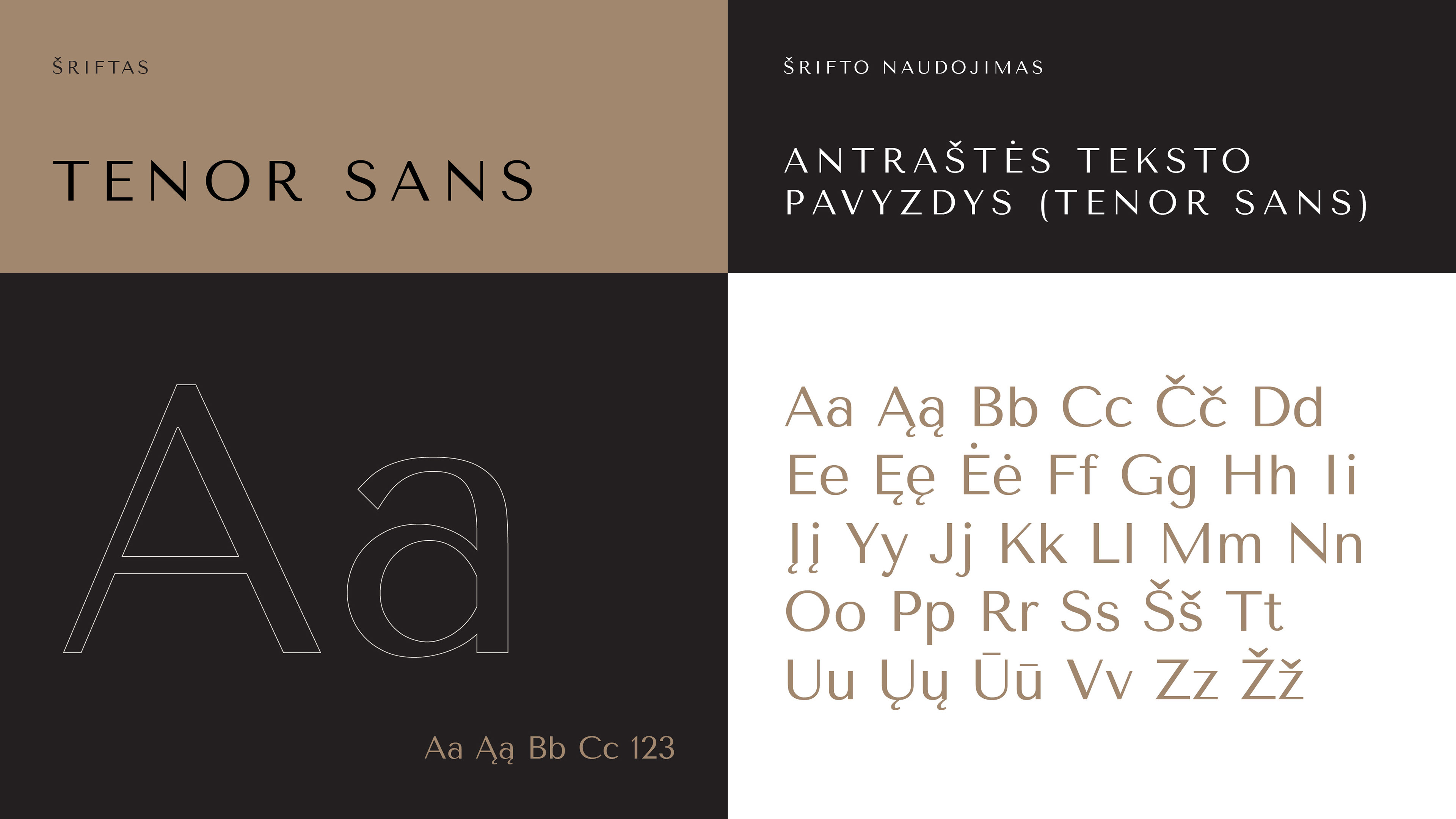 The identity uses Tenor Sans, a minimalist geometric typeface with refined classical proportions, reinforcing architectural elegance and premium positioning.